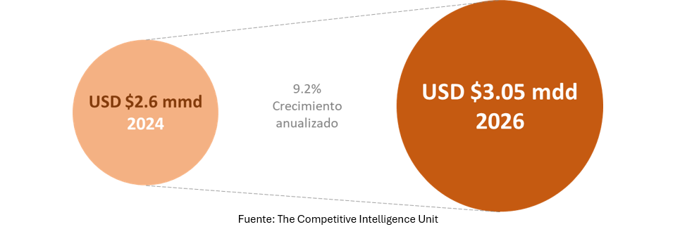 El valor del mercado de ciberseguridad en México ascenderá a $3,050 millones de dólares para 2026, lo que representa una tasa de crecimiento anual de 9.2%